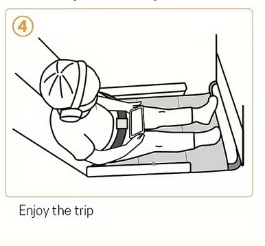 A függőágy egyik oldala a biztonsági övhöz, a másik az előtted lévő tálcához csatlakozik, így stabil és biztonságos támaszt nyújt utazás közben.