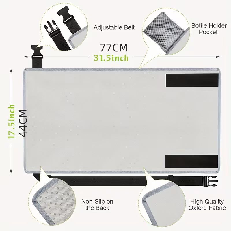 A függőágy egyik oldala a biztonsági övhöz, a másik az előtted lévő tálcához csatlakozik, így stabil és biztonságos támaszt nyújt utazás közben.