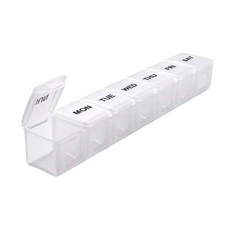 Tedd egyszerűvé és biztonságossá a mindennapi gyógyszerszedést ezzel a praktikus, hétfőtől vasárnapig elkülönített gyógyszertartóval. Az egyes napokra tagolt rekeszek lehetővé teszik, hogy könnyedén rendszerezd vitaminjaidat, tablettáidat vagy kapszuláidat, így mindig pontosan tudod, hogy melyik adagot vetted már be – akár otthon, akár utazás közben.