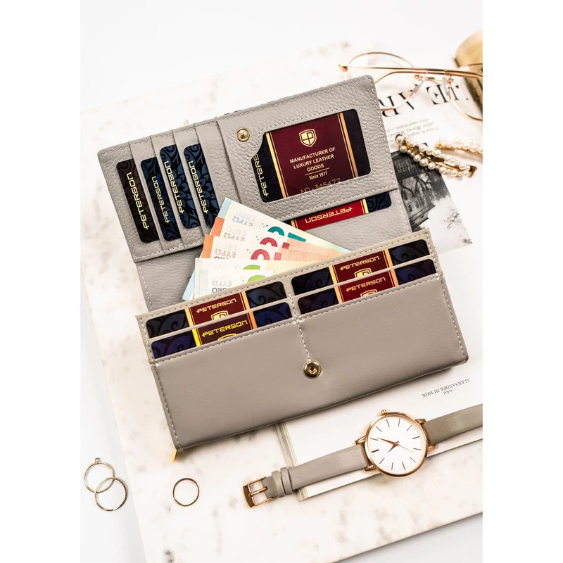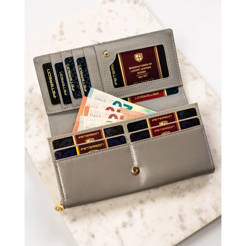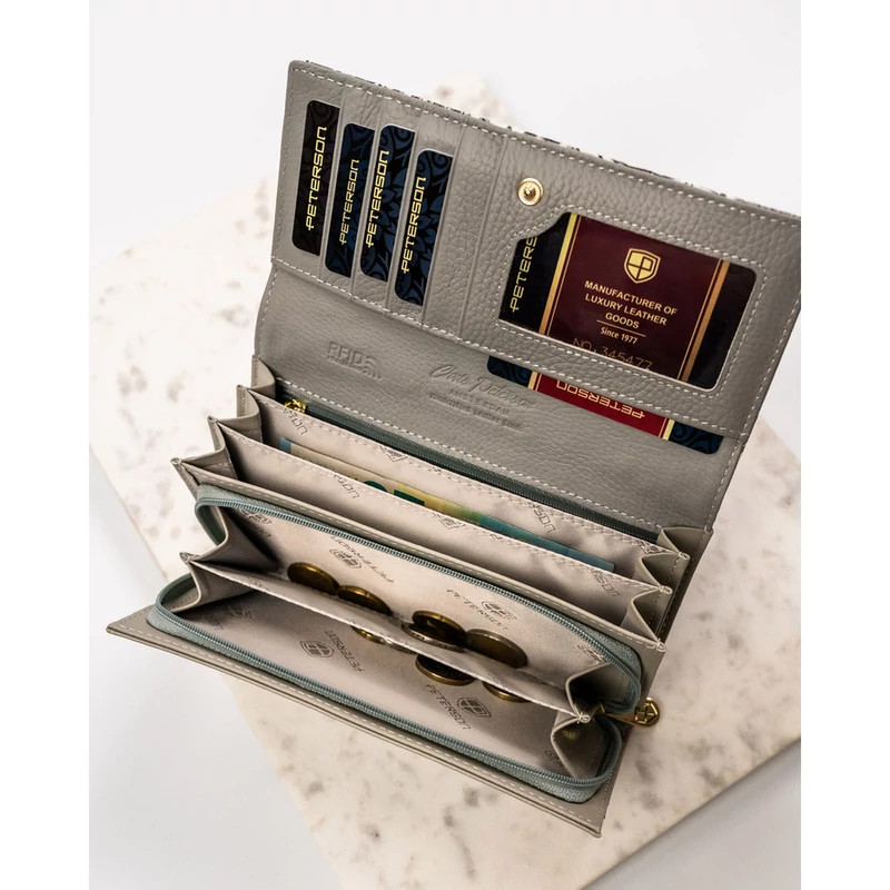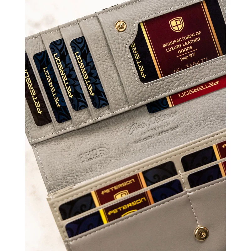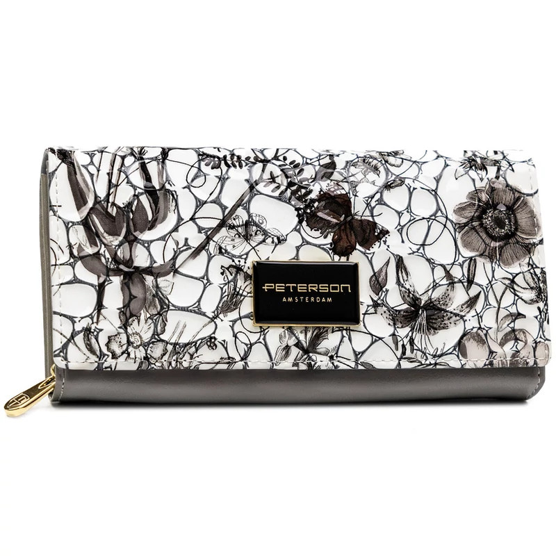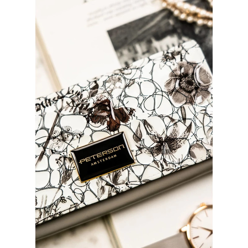 Női pénztárca valódi bőrből, virágmintával, RFID rendszerrel ellátva - Peterson