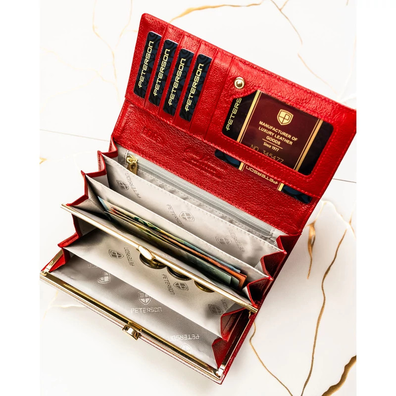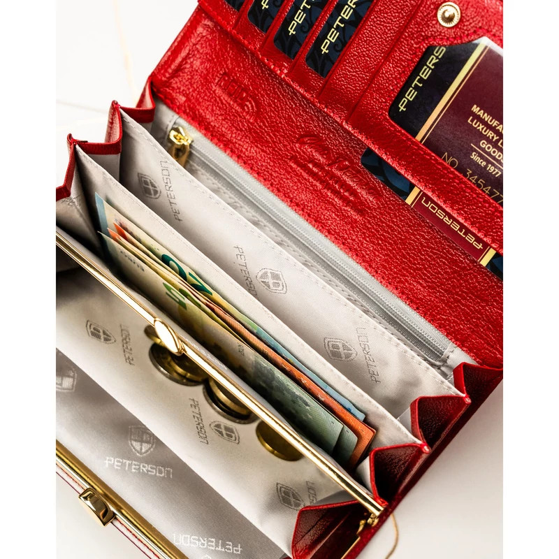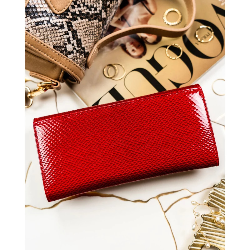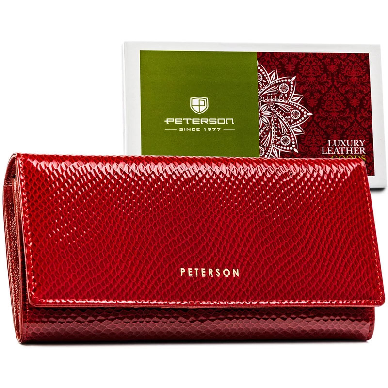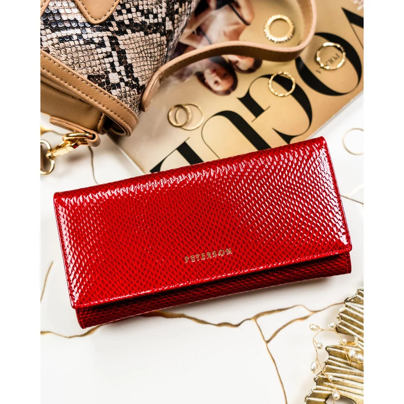 Piros bőr női pénztárca hüllőszerű mintával - Peterson