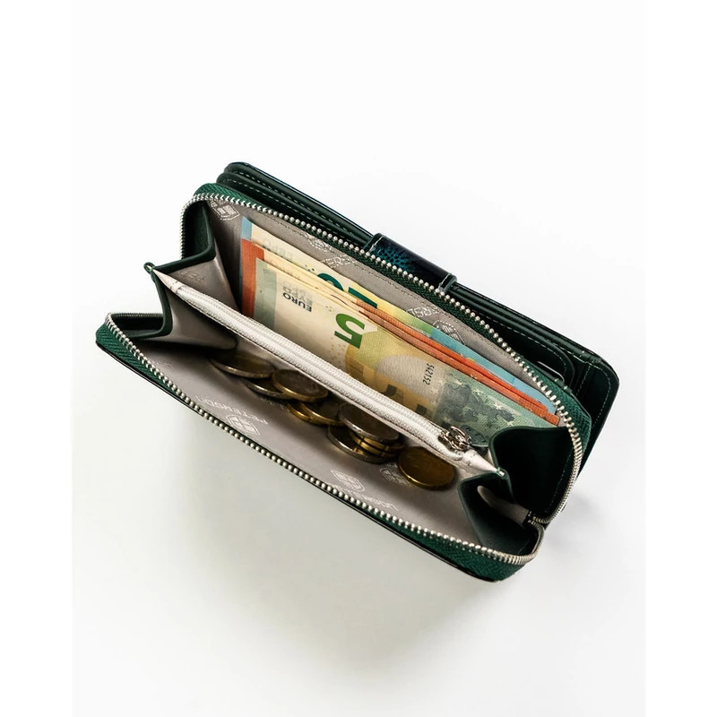 ️ 2️⃣ Aprópénztartó rekeszek: A pénztárcának külön rekesze van az aprópénznek, cipzárral záródik. Belül egy dupla zsebet és 1️⃣ tárolórekeszt találsz , amely ráadásul cipzárral záródik . Ennek köszönhetően mindig gyorsan hozzáférhetsz kisebb összegekhez anélkül, hogy aggódnod kellene amiatt, hogy véletlenül elveszíted azokat.
