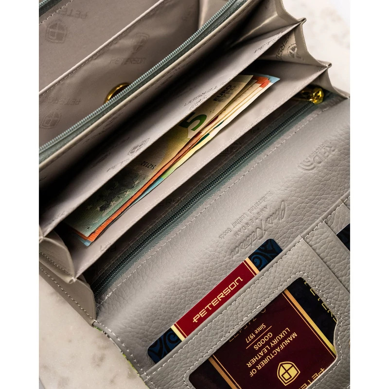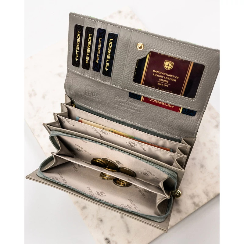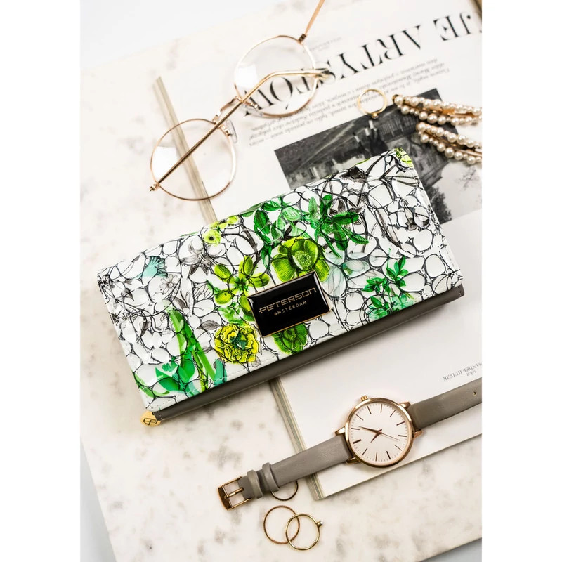 Női pénztárca valódi bőrből, virágmintával, RFID rendszerrel ellátva - Peterson